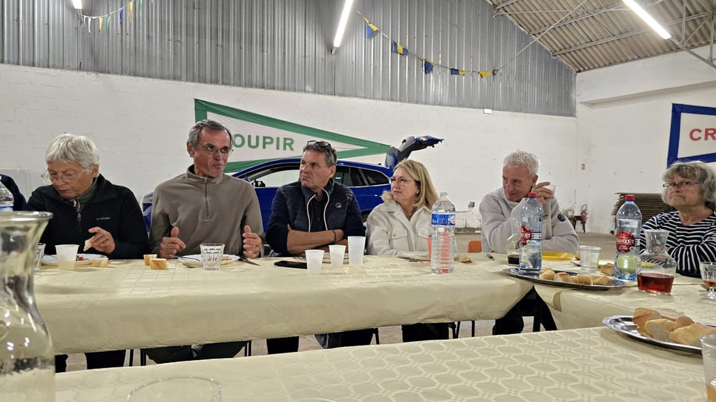 Photo repas de gauche à droite (photo prise par Françoise): ( gras les nouveaux adhérents)